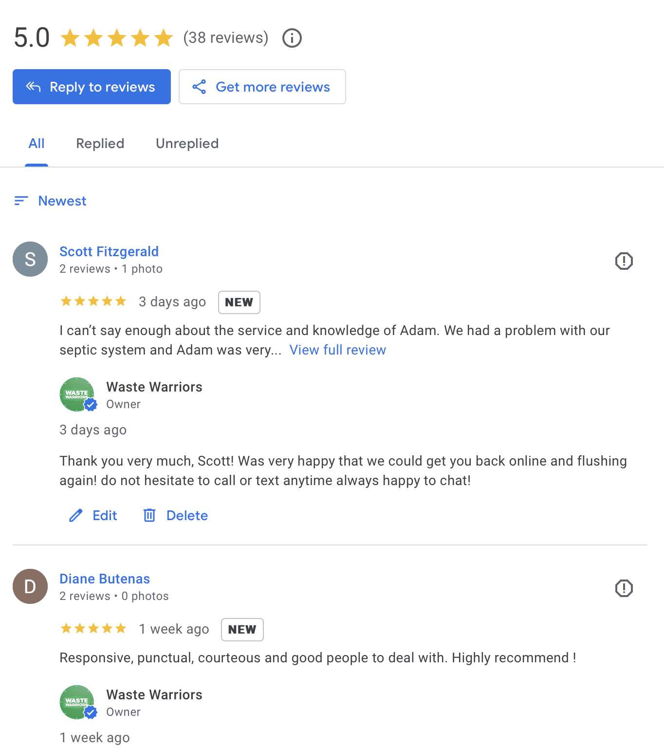 “Had an emergency over the weekend and not knowing much about septic or who to call I did some research online and found waste warriors. Gave them a call and Adam was able to come out within an hour. He was excellent in explaining what was going on and explaining how the system worked. He was able to solve the issue and offer some tips on the septic tank and up-keeping it before it needs to be pumped again. Pricing was reasonable considering it was a Sunday and understanding emergency call outs. The work was excellent and having a company I can rely on makes it worth every dollar. Will definitely be calling them again and recommending them to others.”